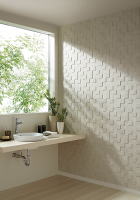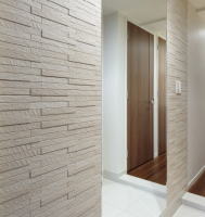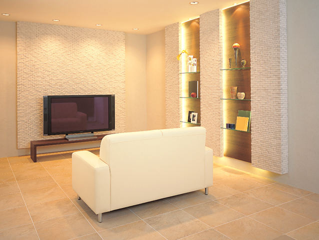 近年の住まいは高気密住宅化が進んでいます。 高気密住宅は室内の気温を一定に保ちやすい反面、湿気が抜けにくいものです。 そこで役立つのが自動的に湿気を吸収・放出して調整するエコカラットです。 エコカラットは微細な孔を持った内装壁材。湿度が高い日はこの孔から湿気を吸収し、 逆に湿度が低い日は湿気を放出する、いわば「呼吸する壁材」です。 自然素材として知られる珪藻土よりも高い調湿効果があり、注目度が高まっています。 まるで絵を飾るように壁そのものがインテリアに変わる。それがエコカラットの魅力です。 壁面すべてをオシャレに演出することも、部分的に施工することで 壁面にワンポイントを入れることも自由自在。 デザインバリエーションも豊富だから家具やカーテンを選ぶのと同じ感覚で 理想の空間づくりができます。 焼き物の「本物質感」で住まいに高級感がプラスされます。